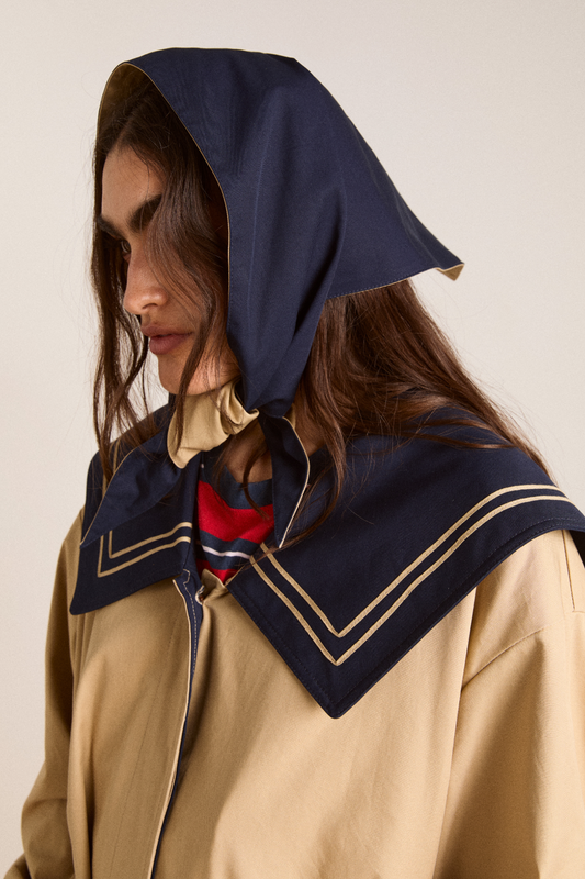 Knitted Stripe Triangle Scarf - Cobalt & Baby Blue